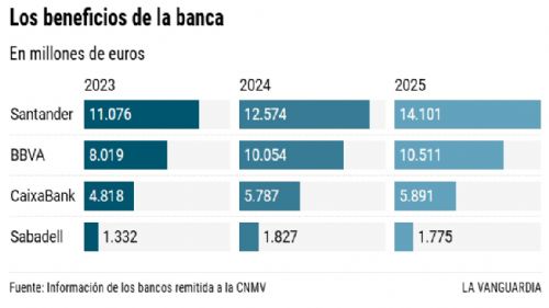 Mientras, por abajo y por arriba acechan otras dos amenazas. Los neobancos ganan cuota poco a poco y algunas entidades como Revolut están alcanzado márgenes superiores al 80% sin sucursales y un número muy reducido de empleados. Lo hacen mientras los gigantes tecnológicos como Apple, Amazon, Microsoft o Google cuentan con herramientas de IA y alcance para comerse el mercado. Si no lo hacen es porque la fuerte regulación bancaria limita por ahora su entrada y los mantiene a raya.