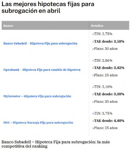 Este es el ranking de las opciones más competitivas ahora mismo si estás pensando en cambiar tu hipoteca.
